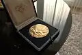 فنسنت هانكوك مع الميدالية الذهبية في دورة الألعاب الاولمبية الصيفية لعام 2012، أثقل ميدالية أولمبية حتى الآن[1]