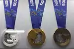الخلف: شعار الدورة محاط باكليل الغار الحواف: اسم اللعبة محفورة باللايزر. ملاحظة: هي أول ميدالية محدودبة إذ أن وسطها اسمك من الحواف .[12] |