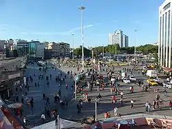 تقسيم هو محور النقل الرئيسي ومكانا شعبيا لكل من السياح والسكان الأصليين في اسطنبول، يقع شارع الاستقلال، وهو شارع تسوق طويل للمشاة، في هذه الساحة، ويمتد الترام من الساحة على طول الشارع، الذي ينتهي بالقرب من نفق تونيل (1875)، وهو ثاني أقدم خط مترو أنفاق في العالم بعد مترو الأنفاق في لندن، (1863).
