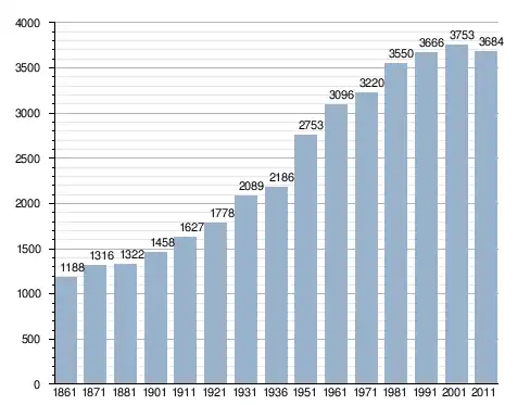 في سنة 1861 بلغ عدد السكان 1٬188 نسمة، وتطور العدد ليصل في سنة 2011 لـ 3٬684 نسمة.