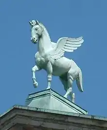 ومن جسد ميدوزا الميت ولد خريساور ومن دمها ولد الحصان المجنح بيغاسوس[12][13] (وهو ابن بوسیدون الذي حملت به في معبد أثينا) وقد وضع رأسها في درعِ أثينا المسمى إيجيس.[1][2][3]