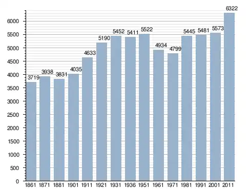 في سنة 1861 بلغ عدد السكان 3٬719 نسمة، وتطور العدد ليصل في سنة 2011 لـ 6٬322 نسمة.