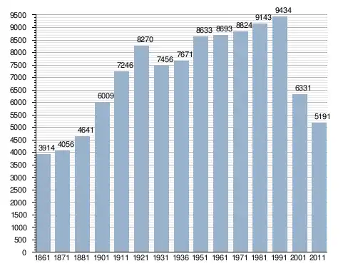 في سنة 1861 بلغ عدد السكان 3٬914 نسمة، وتطور العدد ليصل في سنة 2011 لـ 5٬191 نسمة.