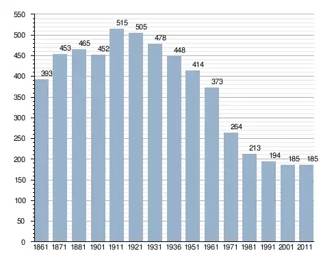 في سنة 1861 بلغ عدد السكان 393 نسمة، وتطور العدد ليصل في سنة 2011 لـ 185 نسمة.