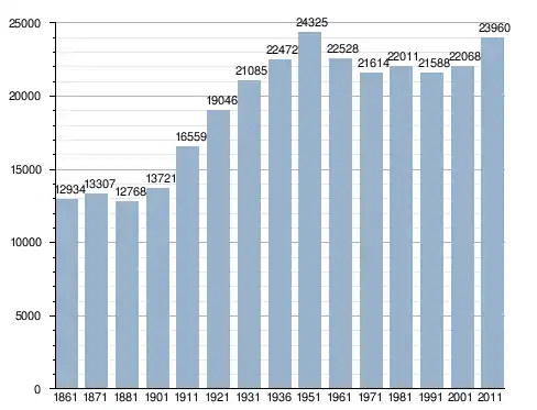 في سنة 1861 بلغ عدد السكان 12٬934 نسمة، وتطور العدد ليصل في سنة 2011 لـ 23٬960 نسمة.