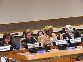 ميرفت التلاوي الوكيل السابق لمنصب الأمين العام للأمم المتحدة والأمينة التنفيذية للأسكوا في عام 2001، وأيضا الأمين العام السابق للمجلس القومي للمرأة في مصر(2000-2001). وشغلت منصب وزير التأمينات والشئون الاجتماعية المصرية (1997-1999). وانضمت مؤخرا كعضو مؤسس للحزب المصري الديموقراطي.[1]
