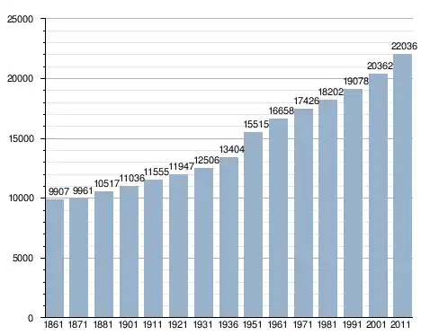 في سنة 1861 بلغ عدد السكان 9٬907 نسمة، وتطور العدد ليصل في سنة 2011 لـ 22٬036 نسمة.