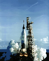 ![]() ميركوري-أطلس 8 أثناء انظلاقه ورائد الفضاء والتر ماتي شيرا (أسفل) | |