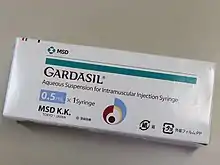 - غارداسيل هو لقاح لفيروس الورم الحليمي البشري المؤتلف، يستخدم في الفيروسات التي تحتوي على الأنماط المصلية المتعددة لفيروس الورم الحليمي البشري. حيث أن الأنماط المصلية هي المسؤولة عن معظم حالات سرطان عنق الرحم في جميع أنحاء العالم.[87]