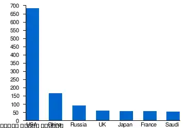 - ^ تشمل الأرقام الخاصة بالمملكة العربية السعودية الإنفاق على السلامة العامة والنظام العام وقد تتضمن مبالغات طفيفة.
