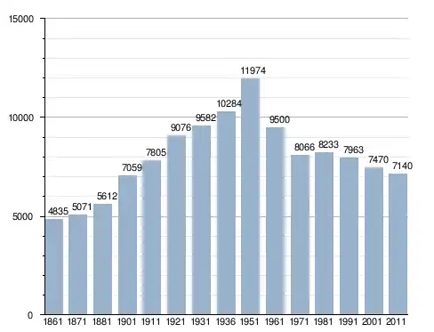 في سنة 1861 بلغ عدد السكان 4٬835 نسمة، وتطور العدد ليصل في سنة 2011 لـ 7٬140 نسمة.