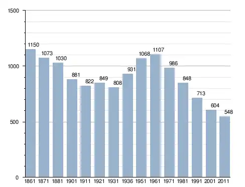 في سنة 1861 بلغ عدد السكان 1٬150 نسمة، وتطور العدد ليصل في سنة 2011 لـ 548 نسمة.