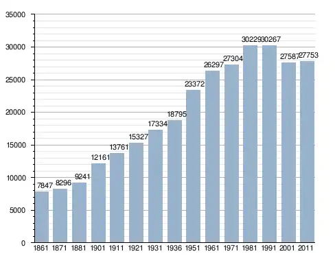 في سنة 1861 بلغ عدد السكان 7٬847 نسمة، وتطور العدد ليصل في سنة 2011 لـ 27٬753 نسمة.