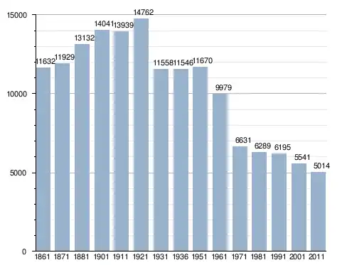 في سنة 1861 بلغ عدد السكان 11٬632 نسمة، وتطور العدد ليصل في سنة 2011 لـ 5٬014 نسمة.