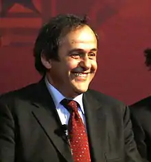 ميشيل بلاتيني (بالفرنسية: Michel Platini) لاعب كرة قدم فرنسي سابق (ولد في 21 يونيو 1955) من أصل إيطالي نسبة إلى جده فرانشيسكو والذي هاجر من إيطاليا إلى فرنسا لتأسيس نفسه. لعب للمنتخب الفرنسي لكرة القدم. يعد أحد أساطير الكرة في عصره. يعد بلاتيني أحد أعظم وأفضل مناولي الكرات في تاريخ كرة القدم، وعلى الرغم من أنه يلعب في خط الوسط إلا أنه أيضا برز بشكل كبير في التهديف. قال عنه بوبي تشارلتون "هذا اللاعب يستطيع دفع الكرة عبر عين الإبرة وينتهي أمرها إلى شباك المرمى". بلاتيني أيضا يتميز في تنفيذ الركلات الحرة.[2]