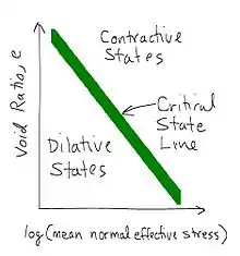ويعتمد ميل التربة إلى التمدد أو الانكماش بشكل أساسي على الضغط المحصور ونسبة الفراغات في التربة، يكون معدل التمدد مرتفعاً إذا كان مقدار الضغط المحصور صغيراً ونسبة الفراغات صغيرة. ويكون معدل الانكماش مرتفعاً إذا كان الضغط المحصور كبيراً ونسبة الفراغات كبيرة. وكتقريب أولي، يتم فصل مناطق الانكماش والتمدد عن طريق خط الحالة الحرجة.