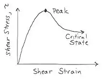 بعد أن تصل التربة إلى الحالة الحرجة (بالإنجليزية: Critical state)، فإنها لن تعود قادرة على الانكماش أو التمدد ويُحدّد إجهاد القصّ علي السطح المنهار (بالإنجليزية: Failure plane) بالإجهاد العمودي الفعّال على نفس السطح المنهار وزاوية احتكاك الحالة الحرجة (بالإنجليزية: Friction angle) وفق المعادلة التالية: