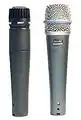 يعتبر هذا الميكروفون تحسينا للميكروفون الديناميكي وقد سمي بالميكروفون الشريطي بالنظر إلى تركيبه حيث أنه يتركب من شريط معرج رقيق جدا يتحرك بحرية داخل مجال مغناطيسي لمغناطيس قوي إلى الأمام أو إلى الخلف مع الحد من تحركه حركة جانبية وطالما هو معروف أنه إذا تحرك موصل داخل المجال المغناطيسي تولدت به قوة دافعة تأثيرية، ونرى أننا بتعريض الشريط للاهتزازات الهوائية الناتجة عن التموجات الصوتية نحصل على طرفيه على قوة دافعة كهربائية متغيرة صغيرة مكافئة للتموجات الصوتية ثم نوصلها إلى شبكة المكبر كالمتبع في حالة الميكروفون الديناميكي.