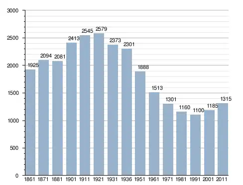 في سنة 1861 بلغ عدد السكان 1٬925 نسمة، وتطور العدد ليصل في سنة 2011 لـ 1٬315 نسمة.