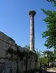 عش لطائر اللقلق على رأس عمود أثري قديم.