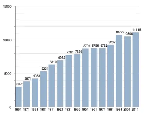 في سنة 1861 بلغ عدد السكان 3٬025 نسمة، وتطور العدد ليصل في سنة 2011 لـ 11٬115 نسمة.