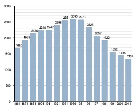 في سنة 1861 بلغ عدد السكان 1٬680 نسمة، وتطور العدد ليصل في سنة 2011 لـ 1٬334 نسمة.