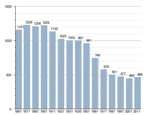 في سنة 1861 بلغ عدد السكان 1٬161 نسمة، وتطور العدد ليصل في سنة 2011 لـ 466 نسمة.