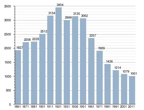 في سنة 1861 بلغ عدد السكان 1٬927 نسمة، وتطور العدد ليصل في سنة 2011 لـ 1٬001 نسمة.