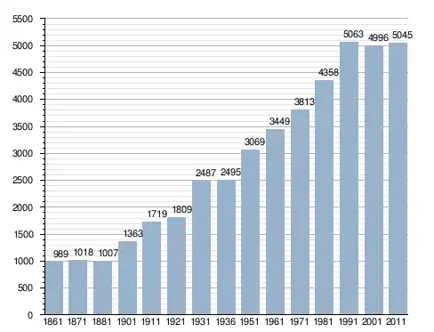 في سنة 1861 بلغ عدد السكان 989 نسمة، وتطور العدد ليصل في سنة 2011 لـ 5٬045 نسمة.