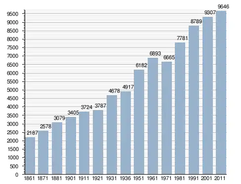 في سنة 1861 بلغ عدد السكان 2٬187 نسمة، وتطور العدد ليصل في سنة 2011 لـ 9٬646 نسمة.