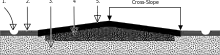- شكل السقف - يميل منحدر الطريق لأسفل من المركز على كلا الجانبين (والعكس صحيح أيضًا كسقف سلبي)