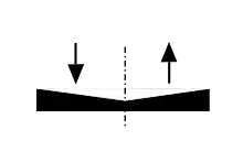 - شكل مُحدَودَب - تشبه شكل السقف، لكن تزيد زاوية الميل العرضي بشكل مطرد من كلا الجانبين (الساعة الرملية)