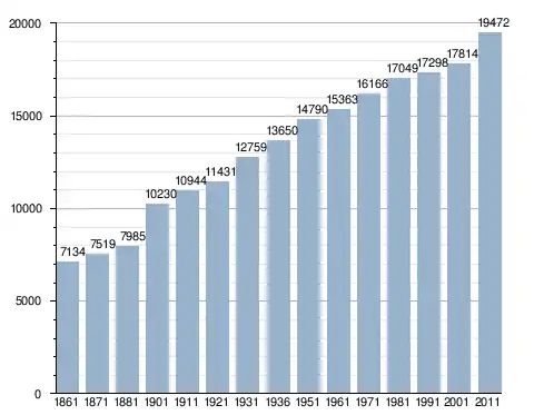 في سنة 1861 بلغ عدد السكان 7٬134 نسمة، وتطور العدد ليصل في سنة 2011 لـ 19٬472 نسمة.