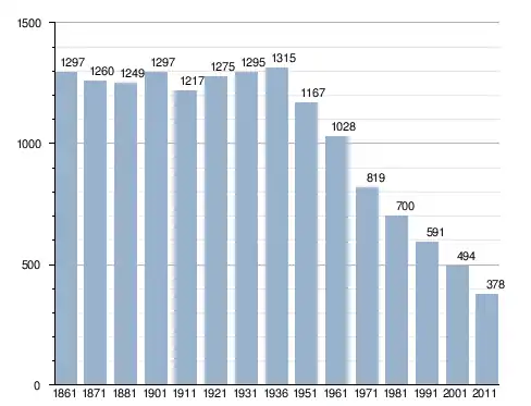 في سنة 1861 بلغ عدد السكان 1٬297 نسمة، وتطور العدد ليصل في سنة 2011 لـ 378 نسمة.