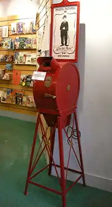 آلة الميوتوسكوب كانت آلة مُعدّة لاستلام القطع النقدية، فيشاهد العيان البطاقات وهي تتحرك خلال عدسة أحادية مُغلقة بغالق مشابه للستيريوسكوب.