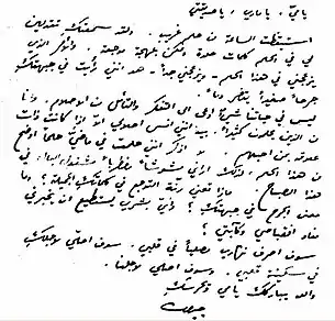 كَتَبت رِسالَة إلى الأمير خالد الجزائري، حَفيد الأمير عبد القادر الجزائري،[27] المُقيم في بيروت تَشكرُه عَلى اهتِمامِه بِأخبارِها وتُظهِر اهتِمامَها لِكُل فَردٍ مِن أفراد أُسرَته: البنات والأبناء، وقالت:[13]