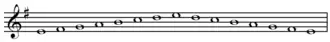 مي صغير (E minor) هو سلم موسيقي صغير يتألف من الدرجات الموسيقية مي E، فا المرتفعة ♯F، صول G، لا A، سي، دو C، ري D، وينتهي بمفتاح مي E، وذلك على الترتيب التالي من اليسار إلى اليمين:
