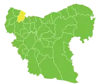 علي بازان، العمود، بافليون، البياعة، البستان الكبير، الديب الكبير، حلوبي كبير، دامة (أيكي دام)، دير صوان، الضحى، دوراقا، جمان، كفر جنة، كفرروم، الديب الصغير، حلوبي صغير، مرساوا، مشعلة، الميدان، المحببة (ناز أوشاغي)، العمرية، القارة، القسطل، قسطل جندو، قطيرة، قاطمة، السعر (سعرنجاك)، شران، السيم (العمرية)، تل الأسود، اليجي، زيتونة، البلورية، العروبة، شلتاح.خرابة شران