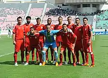 حكيم الرافعي ومحمد قنديل ومحمد شريفي ومحمد اسحيتة وأيمن قليش وخميمة سفيان . وسط الميدان: خالد عليوش وسفيان لوريكة وأيوب هبول وبدر فتوي.
