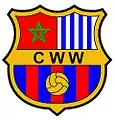 شعار نادي وفاء وداد، العلم المغربي يسارًا وتشابه شعار النادي مع شعار نادي برشلونة.