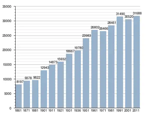في سنة 1861 بلغ عدد السكان 8٬197 نسمة، وتطور العدد ليصل في سنة 2011 لـ 31٬688 نسمة.