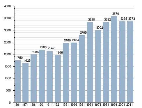في سنة 1861 بلغ عدد السكان 1٬750 نسمة، وتطور العدد ليصل في سنة 2011 لـ 3٬373 نسمة.
