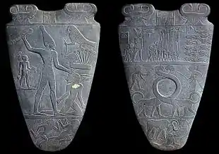 ![]() وجه نارمر منحوت على لوحة نارمر | ||||||||||||||||||||||||||||