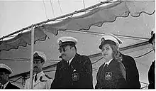 في الساعة السادسة تمامًا أقلعت السفينة براكبيها متمهلة وكان الملك في حلته البحرية واقفًا على الحافة متجهًا إلى المدينة.[94] وبعد أن تحرك اليخت لاحَ في البحر "لنش" يتجه إلى اليخت وتبين أن اللنش القادم يحمل القائد محمد نجيب ومعه أركان حربه، وهم الملك بالتراجع عن مكانه ولكن اللنش كان قد اقترب جدًا من اليخت وانتصب فيه القائد العام ومن خلفه أركان حربه ثم وقفا يؤديان التحية العسكرية فاعتدل القائد الأعلى السابق في وقفته وردّ التحية العسكرية بمثلها.[89] وصعد القائد العام وأركان حربه إلى ظهر السفينة وتبادلا التحية العسكرية مجددًا ثم تحدث نجيب وذكّر الملك أنه الضابط الوحيد الذي رفع استقالته على إثر حادث 4 فبراير 1942 احتجاجًا على أن الجيش لم يدافع عن قائده الأعلى ساعة اقتحم الإنجليز قصر عابدين، فشكره فاروق ورد عليه بأنه يتمنى له كل خير ولم يستطع التغلب على مشاعره فولى ظهره للضباط واتجه نحو زوجته فوقف نجيب وقفة عسكرية وأدّى التحية ثالثًا ونزل الجميع إلى اللنش عائدين، وأطلقت المدفعية تحية الوداع للملك تكريمًا له ورد التحية بيده.[95]