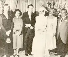 | من نواب الشعب المصري إلى ملك البلاد فاروق وزوجته الملكة ناريمان مع التحيات والتمنيات بولي العهد الجديد النجيب والعهد الجديد إن شاء الله".[53] |