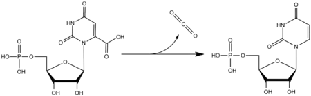 مخطط التفاعل الذي تحفزه نازعة كربوكسيل اليوريدين أحادي الفوسفات.