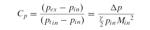 يمكن التعبير عن معامل إسترجاع الضغط الساكن بالمعادلة التالية: