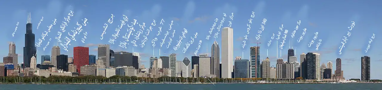 باتجاه الغرب، أصبحت مدينة شيكاغو الموقع الرئيسي الآخر المعني بتطوير ناطحات السحاب المبكرة. على النقيض من نيويورك، ظهرت شيكاغو كمدينة رئيسية فقط في منتصف القرن التاسع عشر، وقد نمت من قرية يبلغ عدد سكانها نحو 50 نسمة في عام 1830، إلى مدينة تضم 30,000 بحلول عام 1850 ونحو 300,000 بحلول عام 1870.[9] أصبحت شيكاغو مركز السكك الحديدية في الغرب الأمريكي والمدينة التجارية الرئيسية للأقاليم الناشئة المشهورة بثقافتها التجارية.[10] اعتبرت نفسها مختلفة عن المدن الواقعة على الساحل الشرقي وفخرت إلى حد كبير بوضعها كمركز متنامٍ ونابض بالحياة.[11]