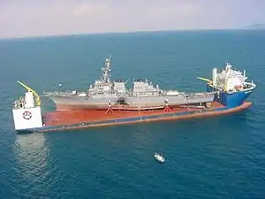 ![]() بلو مارلين تحمل البارجة مدمرة يو إس إس كول. | |