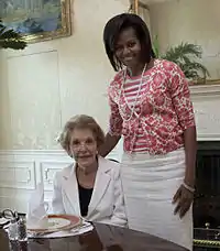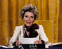 ![]() سيدة الولايات المتحدة الأميركية الأولى نانسي ريغان في عام 1983 | |